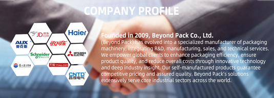 Founded in 2009, Beyond Pack Co., Ltd. (Beyond Pack) has grown into a specialized manufacturer of packaging machinery, integrating R&D, manufacturing, sales, and technical services. We empower global clients to enhance packaging efficiency, ensure product quality, and reduce overall costs through innovative technology and deep industry insight. Our self-manufactured products guarantee competitive pricing and assured quality. Beyond Pack's solutions serve a wide range of core industrial sectors worldwide.